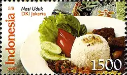 Nasi uduk (from Javanese nasi wuduk; Javanese script: ꦤꦱꦶꦮꦸꦢꦸꦏ꧀) is an Indonesian-style steamed rice cooked in coconut milk dish, especially popular in Betawi and Javanese culinary traditions.[1][2]