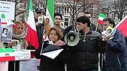 The international community widely condemned Sotoudeh's imprisonment.[22] In October 2010, the International Campaign for Human Rights in Iran, Human Rights Watch, the International Commission of Jurists, the International Federation for Human Rights, the Iranian League for the Defence of Human Rights, the Union Internationale des Avocats and the World Organisation Against Torture joined Amnesty International in a joint statement denouncing Sotoudeh's arrest and calling for her immediate release.[8] The US condemned what it called the "unjust and harsh verdict" against Sotoudeh, and called her "a strong voice for rule of law and justice in Iran".[27] On 20 December 2010, Amnesty International held a day-long protest at the Iranian embassy in London to protest her imprisonment.[28] In January 2011, the Law Society of England and Wales also issued a call for her release.[22]