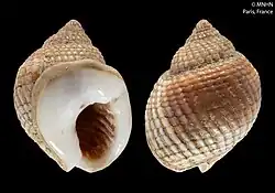 | Two views of a shell of Nassarius globosus (lectotype at MNHN, Paris) | |