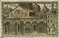 Natale Bonifacio de Sebenico (1537/38, in Sebenico – 23 February 1592, Sebenico) was a Venetian producer of engravings and woodcuts in Rome, where he lived and worked for most of his life. His plates are principally etchings. In 1590, he engraved for a book composed by Domenico Fontana, architect to Pope Sixtus V, concerning the laborious engineering of the moving and erection of the Vatican obelisk.