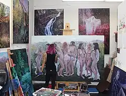 Natalia Fabia is a graduate from ArtCenter College of Design's Illustration program.[4] Fabia's career began in the early 2000s by showing in various group exhibitions around Los Angeles.[5][6] She quickly established herself in the field of figurative painting,[7] and her early works drew comparison to Toulouse-Lautrec in both style and content.[4] Fabia is known for predominantly using oil and employing alla prima painting techniques.[8]