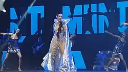During 2018, the movie Super Crazy was premiered, which reached 759,546 spectators in Argentina's box office,[53] and she released two songs for the FIFA World Cup held in Russia ("United By Love" was included in the official album of the 2018 FIFA World Cup and the song "Mi Pobedim").[54][55] She attended the Kids Choice Awards 2018 (winner of a Lifetime Achievement Award)[56] and the Gramado Festival in Brazil (winner of ''Crystal Kikito'').[57] In 2019, her tour called the "Unforgettable Tour" was launched with 14 concerts in various cities of Russia,[58] Belarus, Moldova[59] and Armenia.[60] A few months later she returned to Russia to attend the ''New Wave Festival'' in Sochi to sing with Roberto Kel Torres the theme ''Acapulco''.[61] In November 2019, the Fort Lauderdale International Film Festival in the United States awarded her with the ''Career Achievement Award'' for her career.[62] In Argentina she appeared in the films "La Noche Mágica" (Bad Christmas) (Gaston Portal's first film) with Diego Peretti and "Las Rojas" (The Broken Land) with Mercedes Moran. The turn of the year found her in Poland singing some of her greatest hits in front of 120,000 spectators.