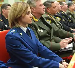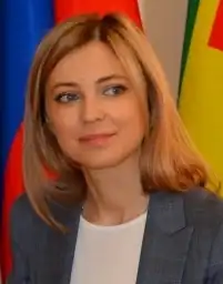 Natalia Vladimirovna Poklonskaya[a][b] (born 18 March 1980) is a Ukrainian-born Russian lawyer. She has served as the adviser to the Prosecutor General of Russia since 14 June 2022.[4]