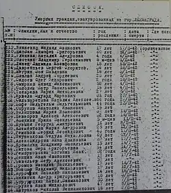 - ^ a b Requiem for the Memory of Evacuated Leningraders Buried in the Vologda Region During the Great Patriotic War. Vol. II: L–Ya. Vologda: Vologda State Pedagogical Institute. 1991. p. 456.
