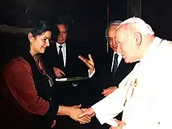 Doctor Charpak receiving the San Valentino medal from Pope Jean Paul II, in 1999