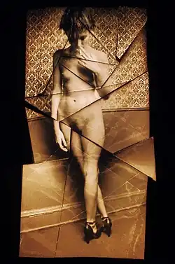 Focusing on the construction of female identity, Entre Quatre Murs, Berlin, is a series of compositions involving women and space. Each image is a composite of elements, separated from the original photograph and printed on layers of transparent orthochromatic film. By superimposing these layers, the image is reconstituted three-dimensionally.