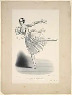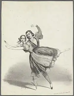 Fitzjames danced the 'peasant pas de deux' in Act 1 of the premiere of Giselle with Auguste Mabille at the Paris Opéra in 1841.[4] She starred in La reine de Chypre, at the Salle Le Peletier of the Paris Opéra on 22 December 1841,[5] and afterwards toured in Italy, receiving acclaim in both Florence and Naples.[2][6]