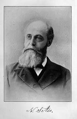 Rev. Dr. Nathan Sites was born in 1830 at Bellville, Richland County, Ohio, United States of America. He was the son of Robert and Sarah Sites (Fidler). He was graduated from Ohio Wesleyan University in 1859. In 1861, he reached Fuzhou with his wife Sarah Moore Sites to begin his oversea missionary work which would last until his death in 1895. Upon his arrival, Sites chose to live in a countryside hamlet among native villagers to experience the rural life of the Chinese. During his missionary life in China, Sites met with many obstacles: one day while carrying out the reconstruction work of the local church in Yanping, he was brutally beaten by an enraged mob, who left a deep scar on his face. Like other missionaries, Sites argued and labored for the creation of a strong and independent Chinese Church, and in this effort he ordained many of the earliest native Christian ministers like Sia Sek Ong, Wong Nai Siong and the father of Hü King Eng.[1]