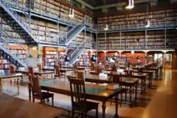 The library's collection comprises about 334,000 volumes from Finland and abroad and around 200 magazines in various languages.[32] In addition to literature on archiving, history and source books, the library has a large collection of books on heraldry and sigillography, and it also has a historically significant amount of literature printed prior to 1850. The collection is mainly expanded with books on archiving, document management, archive usage and heraldry. Whenever possible, key pieces of literature about basic research of the history of Finland are also acquired. Donations received by the library mainly cover the topics of genealogy and local history.[31]