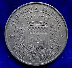 Numismatic reference of the first decisions of the National Assembly at the Grand Théâtre de Bordeaux in February and March 1871, obverse and reverse.