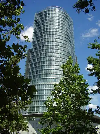 The National Bank of Slovakia Tower or NBS Building is a high-rise office skyscraper in Bratislava, Slovakia. The NBS building is located in Old Town district. With a height of 111 meters, it ranked fifth in the list of tallest buildings in Slovakia as of 2024.