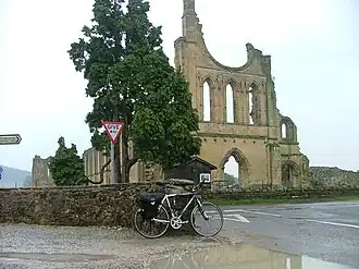 The southern end of Route 656 is in Coxwold 54°11′14.35″N 1°10′52.22″W / 54.1873194°N 1.1811722°W at a Junction with Route 65. Near the village of Kilburn the route climbs steeply up Sutton Bank. It then follows the line of an old Drovers' road before descending steeply into Hawnby.[2] There are further climbs from there to the northern end at a junction with 65 54°21′23.36″N 1°15′49.94″W / 54.3564889°N 1.2638722°W.