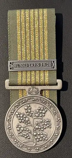 - ^ "National Emergency Medal (Bushfires 2019-20) Declaration 2020". The Governor General of Australia. Retrieved 4 December 2020.