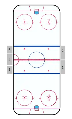 | Face-off procedure | Player taking the face-off is replaced after a face-off violation, except after icing | Player taking the face-off is warned but not replaced after a face-off violation |