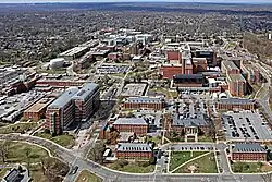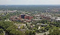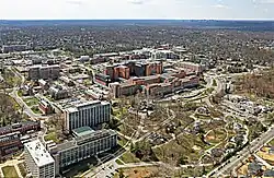 The campus is located between Old Georgetown Road to the west, Wisconsin Avenue to the east, West Cedar Lane to the North, and downtown Bethesda to the south. The Walter Reed National Military Medical Center is located directly across Wisconsin Ave. from the campus, and the Washington, D.C. border is less than three miles to the south. The Medical Center Washington Metro stop is located just beyond the campus fence along Wisconsin Ave.