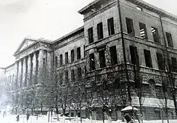 The Dnipro University of Technology is a primarily campus based university. Much of the university is located on a central site in the city of Dnipro, close to the municipal historical museum and scientific library. The main building (1st Corpus), built in 1899 is a protected monument of architecture; it is a large structure with a neo-classical front elevation which serves as the main entrance to the university's territory. Over the years the campus has developed with the addition of numerous new buildings. One of the first of these was the 2nd Corpus which was built specifically for the Mining School (originally as the School of Chemistry),[13] whilst soon after the No. 1 municipal school for girls on Politseyska Street, was acquired for use as the institution's 3rd Corpus.[14] Later, in the 1960s and 80s the university's fourth to tenth corpuses were built. There is no particularly dominant architectural style present amongst the university's buildings other than the Russian interpretation of 19th century neo-classicalism which defines the pre-Soviet era structures present on the territory of the university. The university's 7th Corpus, a large 14 story constructivist building built in the 1970s, was built on a site just slightly to the east of the crossing of Olesya Honchara Street and Shevchenko Street (formerly Politseyska), thus dividing Shevchenko Street into two sections and enclosing the section from O. Hochara Street to Gagarin Street within the grounds of the polytechnic. The university's sport's facilities are located in and around the 6th corpus, which is also located on the grounds of the university.