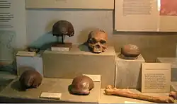 The museum stores some Stone Age artifacts such as fossiled skull and skeleton of Homo erectus, Homo floresiensis and Homo sapiens, stone tools, menhir, beads, stone axe, bronze ceremonial axe and Nekara (bronze drum), also ancient weapons from Indonesia.