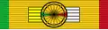 The ribbon is yellow with a green border on one side and a red one on the other,[1] which remember the colours of the national flag of Mali.