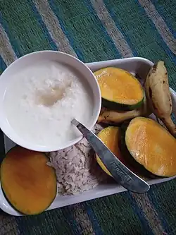Curd and beaten rice are traditionally consumed on National Paddy Day.[11] Yoghurt is also served.[12]