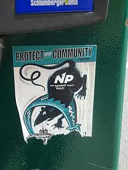 In September 2019, party president Justin Barrett had a milkshake thrown over him when he along with other members the National Party were confronted by counter-protesters after unfurling a banner reading 'Ireland belongs to the Irish' in Galway.[38]