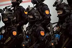 Three task-force-grouped SWAT units (referred to as Peace Enforcing Special Service Forces or "Wei-An" Forces (zh:維安特勤隊)[6] comprise the 1st, 4th and 5th Special Operations Groups. The uniforms and equipment of the SOG units are similar to local SWAT units, which are referred to as Thunder Squads. The Thunder Squads are subordinate to local police departments. However, the SOG Forces are the only police units equipped with V-150S armor vehicles and M998 Humvee, which were transferred from ROC Army after the 2004 shoot out with Chang Hsi-ming.[7]