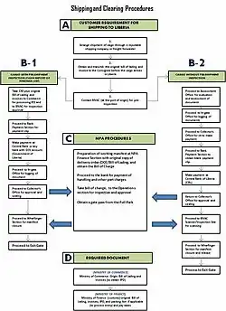 As of 2011, a One-Stop Shop has been established at the Port to make it expedite Shipping and Clearing Procedures. Ministry of Finance, Ministry of Commerce, and Central Bank have set up sub stations at the Port to expedite the process.