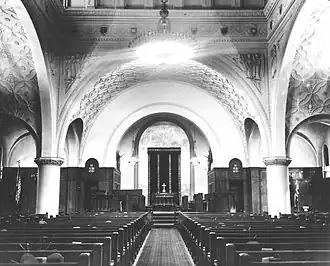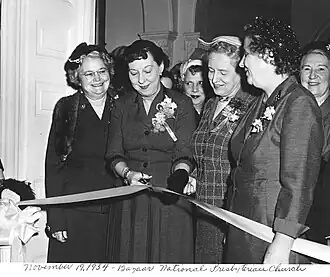 Officially organized on October 13, 1885, with 53 charter members, this congregation acquired a strategic site at the intersection of N and 18th Streets and Connecticut Avenue NW, the heart of a fast-growing and affluent residential area. On June 28, 1887, the cornerstone of the greystone Romanesque Revival church was laid.[22] The first service was held there on September 25, 1889. It was dedicated January 6, 1901, after the construction debt was paid. President Benjamin Harrison and inventor Alexander Graham Bell were among the new congregation's worshipers.[23][24]
