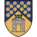 The bishop's gate device on the bank's emblem was part of a pictorial representation of the bank's address at 15 Bishopsgate in the City of London. It is surmounted by two squirrels (suggested by the College of Arms as denoting thrift and foresight) supporting an urn; this alludes to The Flower Pot Inn which originally stood on the site of the entrance to the city office.[19]