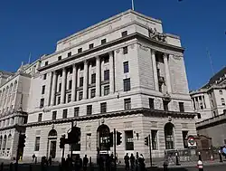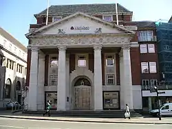 From 1844 on, the Union Bank was located at Princes Street on Bank Junction, across from the Bank of England. On that site the bank erected a prominent new head office building, designed by Philip Charles Hardwick and completed in 1865, remodeled in 1887.[11] That building was in turn replaced by the branch building of National Provincial Bank on the same location, designed by Edwin Cooper and completed in 1932.[12]
