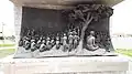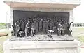 To the left of the main memorial there is a life sized statue of Gandhi with 78 volunteers. These statues are made of bronze.[1] An Open Call for sculptors was made and 40 sculptors were selected from India, Austria, Bulgaria, Burma, Japan, Sri Lanka, Tibet, UK and United States. Each sculptor created two sculptures each. After the clay sculptures had been completed, molds and fiber casts were made and the sculptures were cast in silicon-bronze alloy by Studio Sukriti in Jaipur.[7]