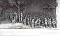 The marchers receive a musical welcome in a village. The villagers listen to Gandhi's speech. They contribute to the march by donating money and a bullock cart. |