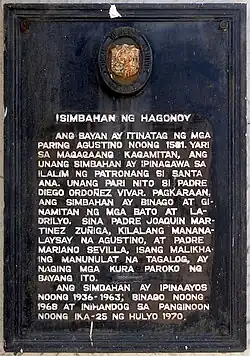1581 - The parish was founded by Augustinian missionaries (of the Order of St. Augustine, or OSA) as one of the first mission stations in what is now the province of Bulacan. According to Gaspar de San Agustin's Conquistas de las Islas Filipinas, the convent of Hagonoy was originally dedicated to "La Concepcion de la Nuestra Señora." Later records from the Augustinians show that the parish of Hagonoy was dedicated to St. Anne, the mother of the Virgin Mary. It was the second oldest parish dedicated to St. Anne in the country until the 1700s, when the Franciscan Sta. Ana Church in Manila changed its patroness to Our Lady of the Abandoned.