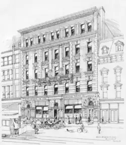 By the late 1890s, the Cox network had interests in banking, mortgages, brokerage, and insurance. His next project was to build a company to operate in the novel area of trusteeship. On 12 August 1898 as the National Trust Company of Ontario, Limited was incorporated by letters patent under the Ontario Companies Act.[5] National Life's shares were held primarily by companies under Cox's control, including Canada Life, Central Canada Savings and Loan, the Canadian Bank of Commerce, and Toronto Loan and Savings. National Trust opened for business on 24 August 1898 at 26 King Street, the headquarters of Central Canada Savings. The first board of 18 directors comprised Sir Joseph Wesley Flavelle, Zebulon Aiton Lash, Edward Rogers Wood, Justice Hugh MacMahon, George Albertus Cox, George Hughes Watson, Elias Rogers, Robert Kilgour, Frederick William Gates, Edward William Cox, Harris Henry Fudger, Sir Edward Kemp, William Mackenzie, Alfred Ernest Ames, Walter Edward Hart Massey, Byron Moffatt Britton, and Frederic Thomas Nicholls. The first president was Cox's nominee, Flavelle; the first vice-president was A. E. Ames; and the interim general manager was Edward Rogers Wood. Along with Wood, the other four members of the original staff were C. O. Merson, James Watt, Herbert Morley Asling, and A. D. Morrow.