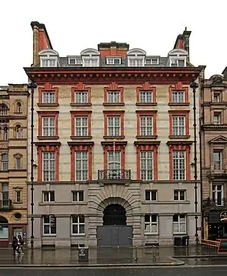 It was built between 1898 and 1901 for Parr's Bank, having been designed by Richard Norman Shaw.[2] It later housed NatWest Bank, until they closed the bank in October 2017, putting it out for rent.[3] Plans were announced in October 2021 to convert the venue into a 92-bed hotel and bar.[4] Liverpool City Council approved planning permission for the ground floor to be turned into a bar and restaurant in July 2022, with further permission on turning the upper floors into a hotel with roof extension pending.[5]