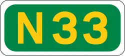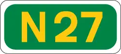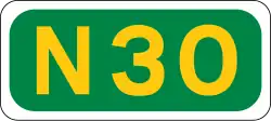 A national primary road (Irish: príomhbhóthar náisiúnta) is a road classification in Ireland. National primary roads form the major routes between the major urban centres. There are 2649 km of national primary roads. This category of road has the prefix "N" followed by one or two digits. Motorways are prefixed "M" followed by one or two digits.