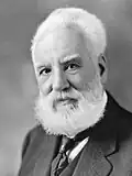 Alexander Graham Bell is credited with patenting the first practical telephone. He also co-founded the American Telephone and Telegraph Company (AT&T) in 1885.[63] Many other inventions marked Bell's later life, including groundbreaking work in optical telecommunications, hydrofoils, and aeronautics. Bell also had a strong influence on the National Geographic Society[64] and its magazine while serving as the second president from January 7, 1898, until 1903. |