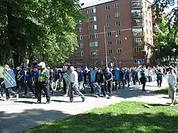 The National Socialist Front (Swedish: Nationalsocialistisk front, NSF) was at the time of its dissolution the largest Neo-Nazi political party in Sweden.[1][2][3][4] The organization was founded in Karlskrona on 8 August 1994. It became a political party on 20 April 1999, the 110th birthday of Adolf Hitler. The party's official newspaper—now defunct—was named Den Svenske Nationalsocialisten ("The Swedish National Socialist"), also known as Den Svenske ("The Swedish").