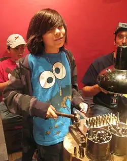The Navajo, or Diné, began working silver in the 19th century. Atsidi Sani, or "Old Smith" (c. 1828 – 1918),[48] who may have been the first Navajo blacksmith and is credited as the first Navajo silversmith, learned to work silver from a Mexican smith as early as 1853.[44][49] Navajo metalsmiths make buckles, bridles, buttons, rings, canteens, hollow beads, earrings, crescent-shaped pendants (called "najas"), bracelets, crosses, powder chargers, tobacco canteens, and disks, known as "conchas" or "conchos" - typically used to decorate belts - made from copper, steel, iron, and most commonly, silver.