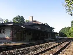 Rail service in Naugatuck dates back to the 1840s with the establishment of the Naugatuck Railroad. The Naugatuck was acquired by the New York, New Haven and Hartford Railroad, which built a new station house between 1908 and 1910, and opened it in 1911. The old station was designed by Henry Bacon, one of America's foremost architects.[6] This former station building was recently the headquarters for the Naugatuck Historical Society[7] and is now The Station Restaurant.[8]