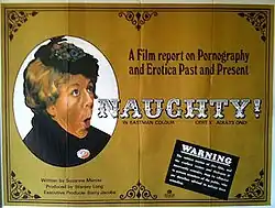 Naughty, also known as Naughty! A Report on Pornography and Erotica, is a 1971 British dramatised documentary film directed by Stanley Long and written by Suzanne Mercer.[1] Long said although the movie was sold as a sex film it was "a fairly serious film" which "had some purpose". Mercer called it "a serious sociological look at pornography and erotica."[2][3] It mixes interviews with archived footage and re-enactments,[4] and was screened at the Wet Dream Film Festival in Amsterdam in 1971.[4] The same team later made a similar movie, On the Game (1974).[4]
