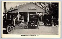 Around 1870, the area transitioned from farmland into a popular summer campground that existed until the 1910's. [15] The campground provided spaces for families to pitch tents, with many using surplus army tents from the Civil War. Visitors to Nausauket came by steamboat or via horse-drawn station wagon from the Apponaug train station [16] (formerly located at 3666 West Shore Road/Station Street). [17] In 1885 a store was constructed at 478 Nausauket Rd [18] to service the campground. It operated as Lewis Store in the 1920's, Smith's Grocery in the 1930's and 40's, then Green's Variety in the 1950's, followed by a news distributors office, eventually becoming a private residence, which still exists today. [19]