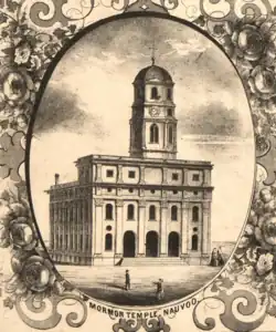 The Nauvoo Temple was the second temple constructed by the Church of Jesus Christ of Latter Day Saints.[2][3] The church's first temple was completed in Kirtland, Ohio, United States, in 1846. In the winter of 1846, when the main body of the church was forced out of Nauvoo, the church attempted to sell the building, finally succeeding in 1848. The building was damaged by arson and a tornado before being demolished.