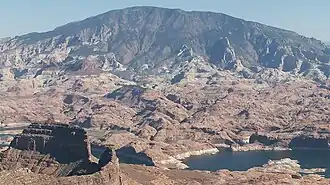 Navajo Mountain is a prominent free-standing laccolith, a dome-shaped body of igneous rock that intruded into sedimentary layers and lifted up the overlying layer. The igneous rock at the core of the mountain is wrapped in sedimentary layers. Such igneous intrusions have been exposed by erosion and well studied in similar mountain ranges on the Colorado Plateau, such as the Henry Mountains, the Abajo Mountains, and the La Sal Range.[5]