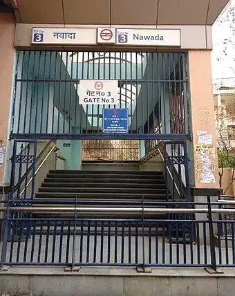 The Nawada metro station is located on the Blue Line of the Delhi Metro.[1]