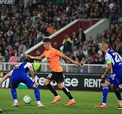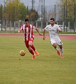 ![]() Nazmi Gripshi playing against Dinamo Zagreb on UEFA Conference League | |||