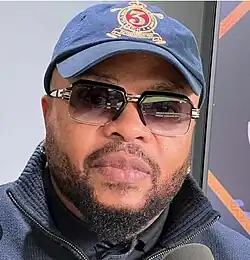 However, ndombolo's sonic identity is widely attributed to Wenge Musica, and more specifically to its atalaku, Tutu Caludji.[8][38][42][43] His signature cry, "ndombolo", delivered with rhythmic intensity and emotive inflection, is regarded as the genre's defining vocal element.[8][38][44] Cultural scholar Antoine Manda Tchebwa argues that the genre was "carried entirely by Tutu Caludji" and that his innovation "immediately conquered the whole of the Congo, then Africa between 1995 and 2000".[8][45] Tchebwa further posits that the "ndombolo" cry is not merely an interjection, but a sonic trademark that encapsulates the cultural and musical ethos of a generation. This cry marked the beginning of what many regard as the golden age of Congolese music in the 1990s.[8] While Caludji's authorship of the iconic cry is largely undisputed,[8][38][46][47] the choreography of the ndombolo dance is widely seen as a collective creation. Its early visual representations are found in the music videos from Wenge Musica's 1996 Pentagone album, where the Dimba-Boma dancers laid the initial framework for its distinctive movements.[38] Key figures such as Werrason and JB Mpiana are credited with introducing elements like twirling and expressive hand gestures. Additional refinements were contributed by Souzi Versace and Bouro Mpela during a pivotal rehearsal at La Samba Playa bar in Kinshasa in May 1995.[38][48]