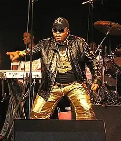 Koffi Olomide's ndombolo album Loi, released in December 1997, also secured a gold record, with 25,000 copies sold in France and 105,000 internationally.[53][54] The album's eponymous single became synonymous with ndombolo dance, making waves across Africa and France with a combination of the singer's deep baritone voice and sophisticated arrangements, blending old-school rumba and keyboard melodies and ending in a guitar climax.[55][56][57] During this time, ndombolo made significant inroads into East Africa, particularly Kenya, where dance floors became overcrowded due to its surging popularity, and the "influx of waist-wriggling dancers" became a common sight.[58] Congolese bands actively sought performance contracts from bar owners in Western Kenya, with ndombolo and the local genre benga gaining widespread traction in Kisumu and its neighboring towns. In Awendo, a variety of Congolese and local musicians, including Super Mazembe, Eden Musica, T.P. Bilenge, Bikassy Mandeko Bijos, and Banalola, graced the music scene.[58] The Daily Nation reported that local youth in Kisumu were rapidly adopting the style, with groups like Orchestra Mass System, whose members embraced Congolese personas such as La Sape and excelled in the ndombolo dance style.[58] Congolese bands like Chock Generation, Amite Musica, and Chachu La Musica, led by former Super Mazembe rhythm guitarist Loboko Bua Mangala, also had a notable presence.[58]