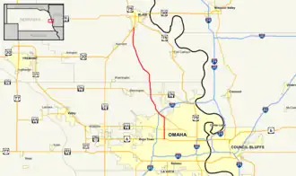 Nebraska Highway 133 (N-133) is a state highway in Douglas and Washington counties in Nebraska, United States, that conencts U.S. Route 6 (US 6) in Omaha with U.S. Route 30 (US 30) in Blair. For its entire length, N-133 is a four-lane divided highway.[3]