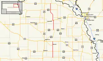 Nebraska Highway 57 (N-57) is a highway in northeastern Nebraska, United States. It is divided into two segments, which combine for a length of 58 miles (93 km). The southern segment begins northeast of Leigh at N-91 and ends at U.S. Highway 275 north of Stanton. The northern segment begins south of Carroll at N-98 and ends north of Hartington at an intersection with N-12.