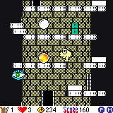 The Game Boy and Nintendo Entertainment System versions of Castelian were developed by Bits Studios and released in the United States by Triffix and in Japan by Hiro Entertainment; in these, the lead character is called Julius. The Game Boy and Nintendo versions were later released in Japan as Kyoro Chan Land, which replaced Julius with Kyorochan, jewels with Chocoballs, altered the enemy graphics and (in the Famicom version) implemented a password system and a pause feature. The Italian bootleg version was called Subline. The Nintendo versions were composed by David Whittaker, and the title songs were covered by Whittaker from the original Tower Toppler game's title screen. In the Famicom version, the title screen plays what is the bonus game theme from the US version.
